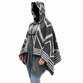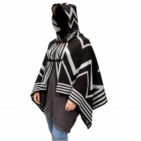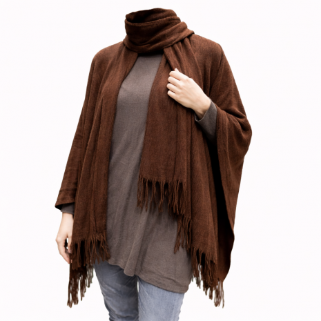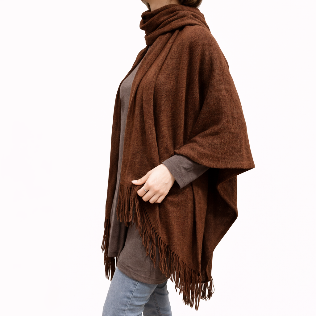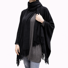 Ζεστό γυναικείο πόντσο με κασκόλ, μανίκια και κρόσσια χωρίς κούμπωμα, one size