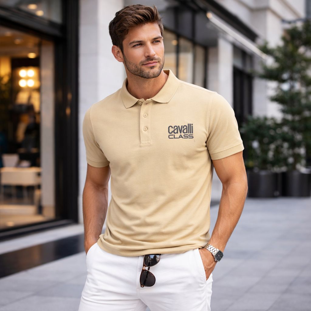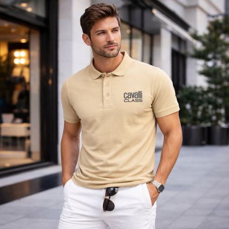 Cavalli Class Ανδρική μπλούζα Polo κοντομάνικη, 100% Βαμβάκι, Beige