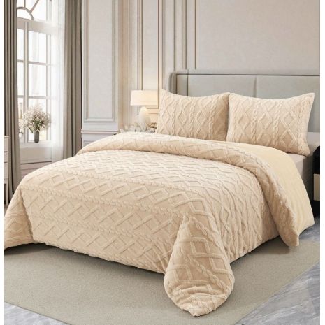 Υπέρδιπλο Ισοθερμικό Κουβερτοπάπλωμα με 2 Μαξιλαροθήκες Tufted  Ivory