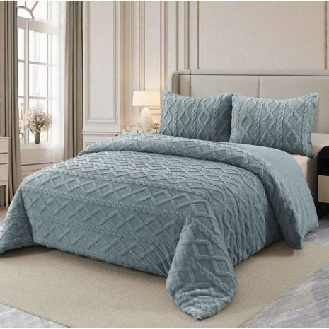 Υπέρδιπλο Ισοθερμικό Κουβερτοπάπλωμα με 2 Μαξιλαροθήκες Tufted Light Grey