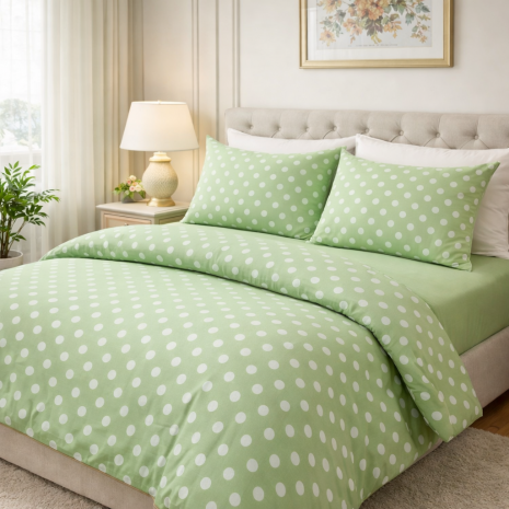 2 σεντόνια, 1 πουά και 1 μονόχρωμο, διαστάσεων 240×260 cm