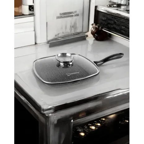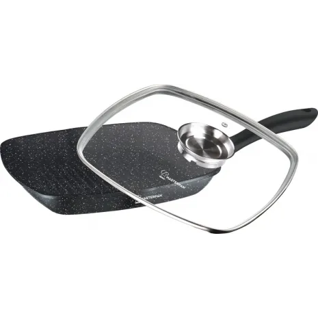 MasterPan Τηγάνι Γκριλ 28cm με Τριπλή Μαρμάρινη Επίστρωση & Γυάλινο Καπάκι Black Granite Line – MP-2146