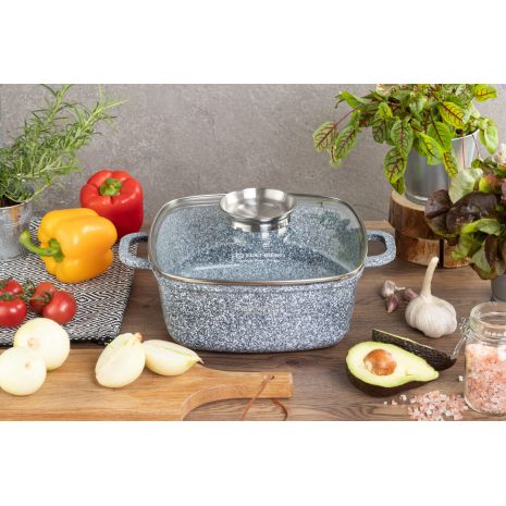 Αντικολλητική τετράγωνη κατσαρόλα 28cm, 6,5Lt με γυάλινο καπάκι Edenberg EB-13975
