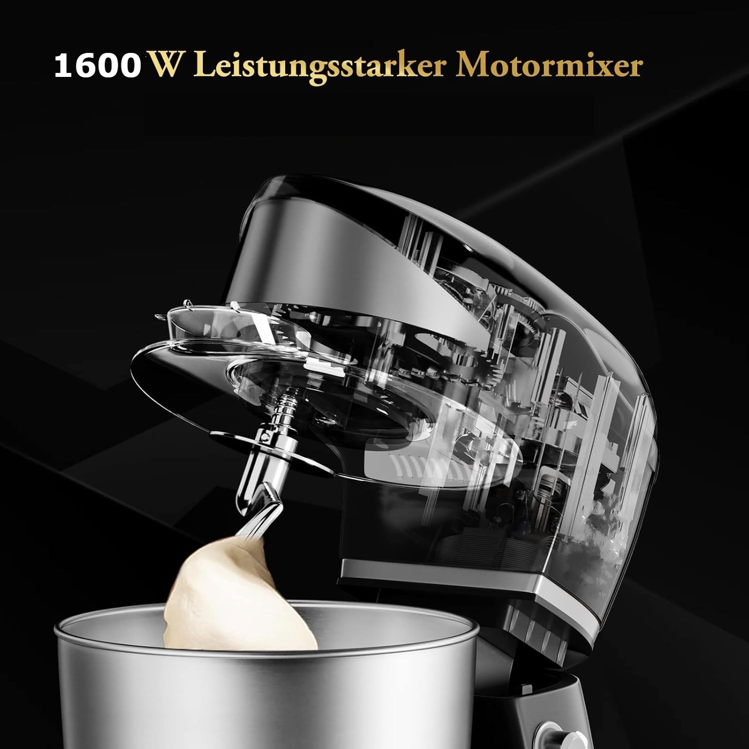 Royalty Line, Επιτραπέζιο μίξερ - Κουζινομηχανή με κάδο 6lt από ανοξείδωτο ατσάλι RL-PKM1600 Black Δείτε το Video