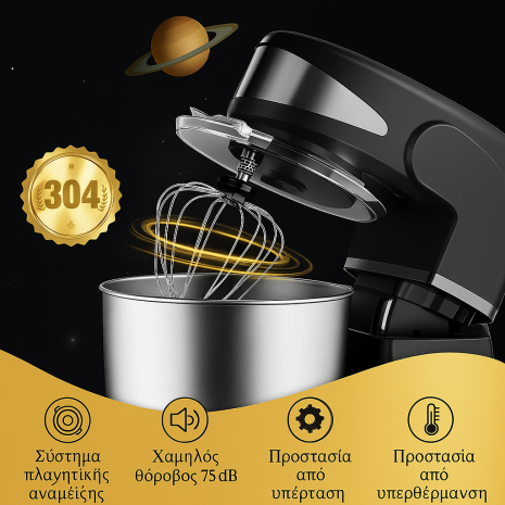 Τα εξαρτήματα του μίξερ ακολουθούν πλάγια και πλανητική κίνηση με διπλή ουσιαστικά περιστροφή: