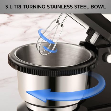 Ο κάδος 3 λίτρων από βουρτσισμένο ανοξείδωτο ατσάλι είναι ανθεκτικός, υγιεινός και εύκολος στο καθάρισμα. Η αντιολισθητική βάση προσφέρει σταθερότητα κατά τη λειτουργία, ενώ το μαύρο/Inox φινίρισμα δίνει premium αισθητική που ταιριάζει σε κάθε σύγχρονη κουζίνα.