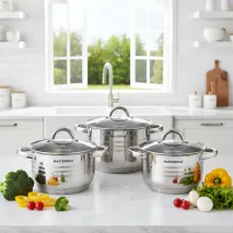 Αναβάθμισε την καθημερινή σου μαγειρική με το σετ κατσαρόλες Masterpan 12 τμχ, ένα ολοκληρωμένο σύνολο υψηλής ποιότητας που συνδυάζει αντοχή, λειτουργικότητα και διαχρονική κομψότητα.
