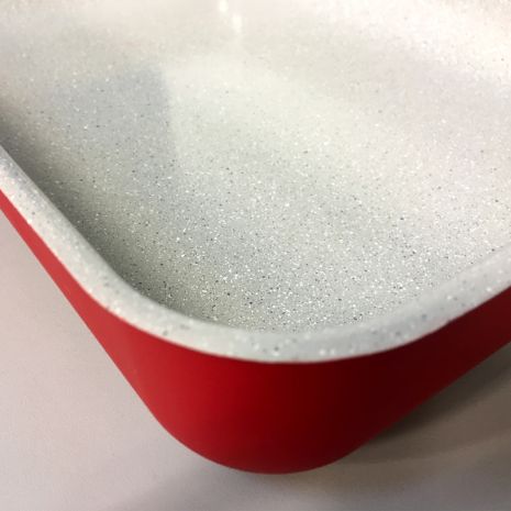 Η μαρμάρινη επίστρωση προσφέρει εξαιρετική αντοχή στις γρατζουνιές και καθαρίζεται πανεύκολα, ενώ η αντιβακτηριδιακή της ιδιότητα διασφαλίζει υγιεινό μαγείρεμα χωρίς περιττά λάδια ή βούτυρο.