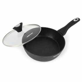 Masterpan, Τηγάνι 28 x 6.8 cm Αντικολλητικό για Βαθύ Τηγάνισμα με Μαρμάρινη Επίστρωση και Γυάλινο Καπάκι MP-2376