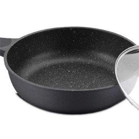 Αντικολλητικό τηγάνι Wok με επίστρωση μαρμάρου & γυάλινο καπάκι, 28εκ. Royalty Line